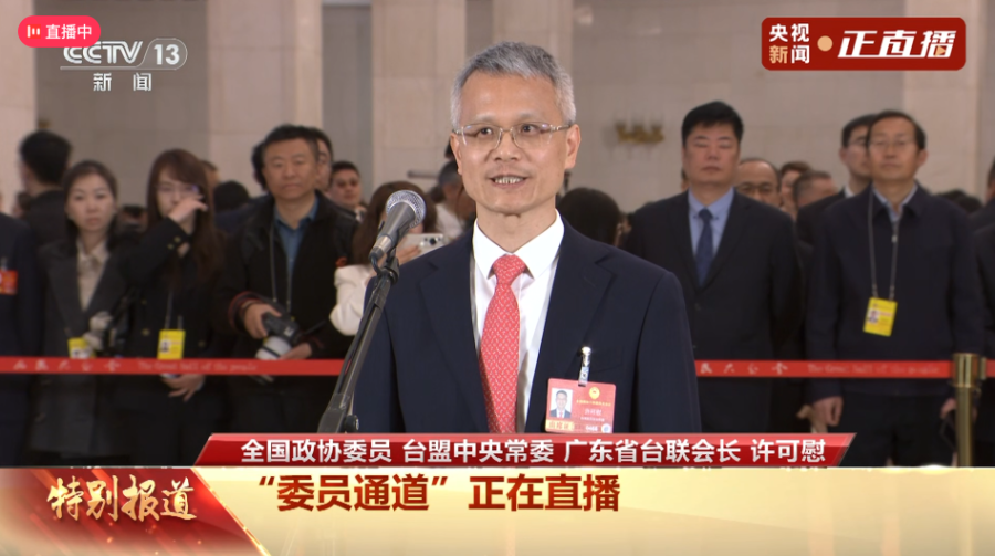 3月11日,全国政协委员、台盟中央常委、广东省台湾同胞联谊会会长、南方医科大学副校长许可慰走上全国政协十四届四次会议第三场“委员通道”,回答媒体记者关于两岸青年交流的提问。